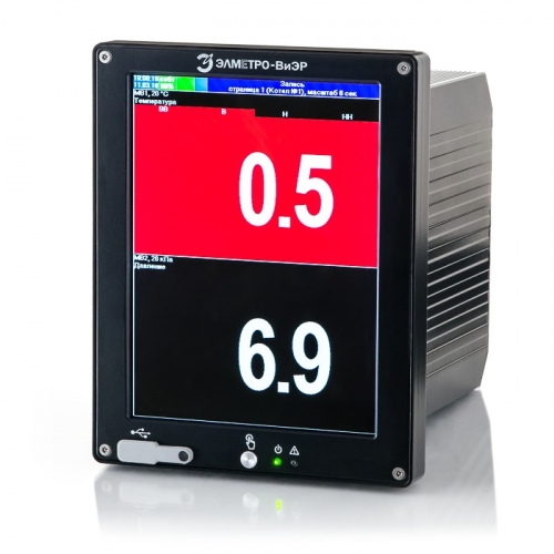Видеографический безбумажный регистратор ЭлМетро-ВиЭР-М7 (8”) предназначен для измерения, регистрации, визуализации и преобразования электрических сигналов от датчиков и приборов: тока и напряжения постоянного тока, сопротивления, термометров сопротивления, термопар, пирометров, цифровых сигналов (RS-485, CAN, Ethernet), а также вычисления расхода сред. Регистратор выполнен в щитовом исполнение.