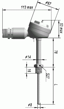 ТСПУ 9418 состоят из первичного термометра, соединенного с расположенным в головке нормирующим преобразователем с выходным унифицированным сигналом (4-20) мА или (0-5) мА.